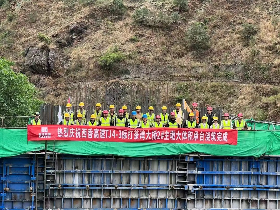 4月29日,西香高速TJ4-3标打茶湾大桥2号主墩承台混凝土顺利完成浇筑,标志着西香高速TJ4-3标控制性工程建设取得关键性突破。