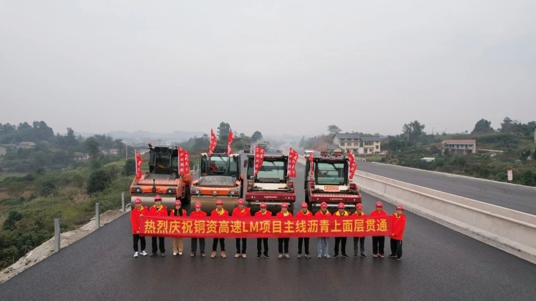 11月22日,随着主线最后一段沥青混合料摊铺、碾压工序完成,铜资高速LM项目沥青面层实现主线贯通,这标志着铜资高速主体工程全面告竣,为2025年年底通车目标奠定了坚实基础。