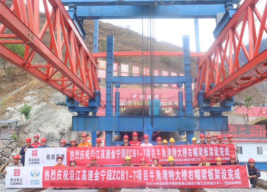 6月15日上午,随着最后一块梁板稳稳落下,沿江高速金宁段ZCB1-7项目牛角湾特大桥右幅梁板架设完成,标志着项目建设取得突破性进展。