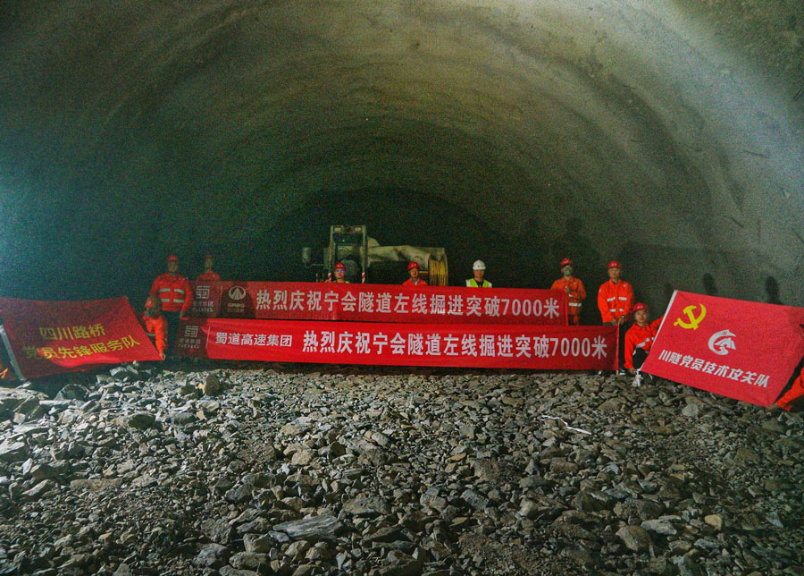 6月28日,沿江高速最长隧道——宁会隧道再传捷报,左线掘进顺利突破7000米大关,为2024年沿江高速宁攀段提前建成通车奠定了坚实基础。