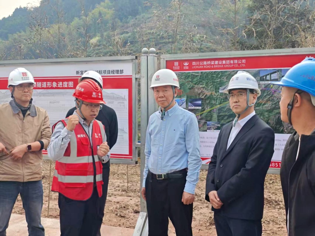 刘勇一行深入建设现场,先后前往新宜高速TJ1标段杨柳坝枢纽互通、新宜高速TJ2标段新安互通、新宜高速TJ3标段坛子湾隧道出口、新宜高速TJ5标大山顶隧道进口、TJ6标玉龙互通等关键点位,实地查看了项目建设进展,认真听取了项目先期开工点施工情况汇报。