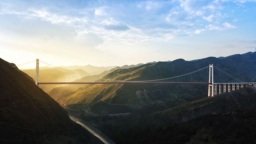 叙古高速赤水河红军大桥,全长2009米,主桥为1200米双塔单跨钢桁梁悬索桥,主塔高243.5米,是当时世界上同类型桥梁中主塔高度第一、跨径第二的峡谷悬索大桥