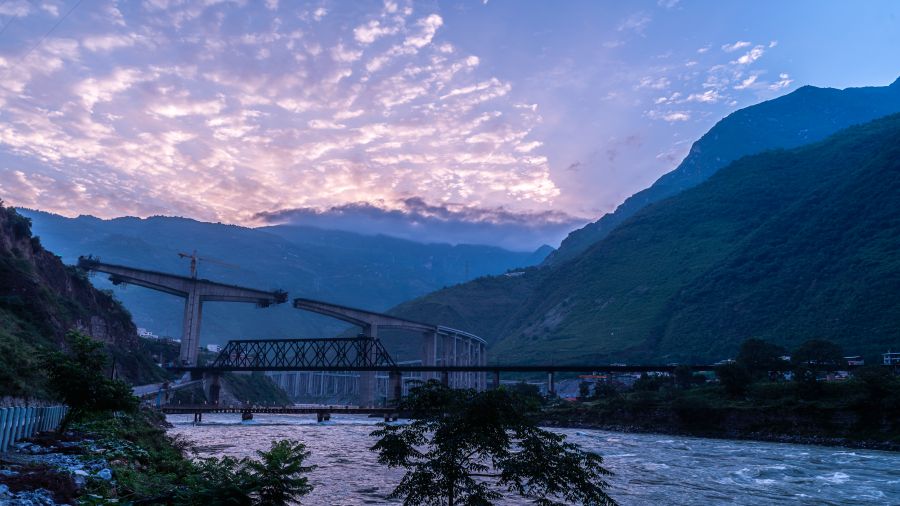 峨汉高速公路乌史大桥乡互通起于凉山州甘洛县乌史大桥乡横跨大渡河,止于雅安市汉源县乌斯河镇,主线全长2.138Km,主要工程包括:乌斯河特大桥1座,立交匝道5条,最小平曲线半径为52m,最大纵坡4.718%。互通将两山一河连接贯通,建成后将大大缩短汉源到甘洛县的通行时间。截止目前,总体工程量完成94%,预计今年10月实现贯通。