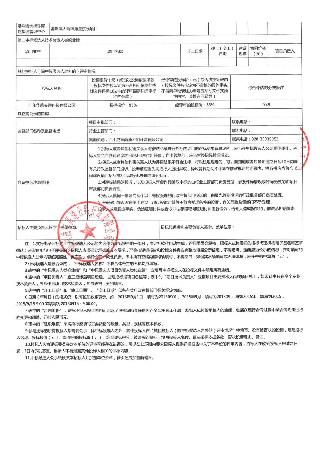 隧道底板采空区钻探劳务协作项目中标候选人公示