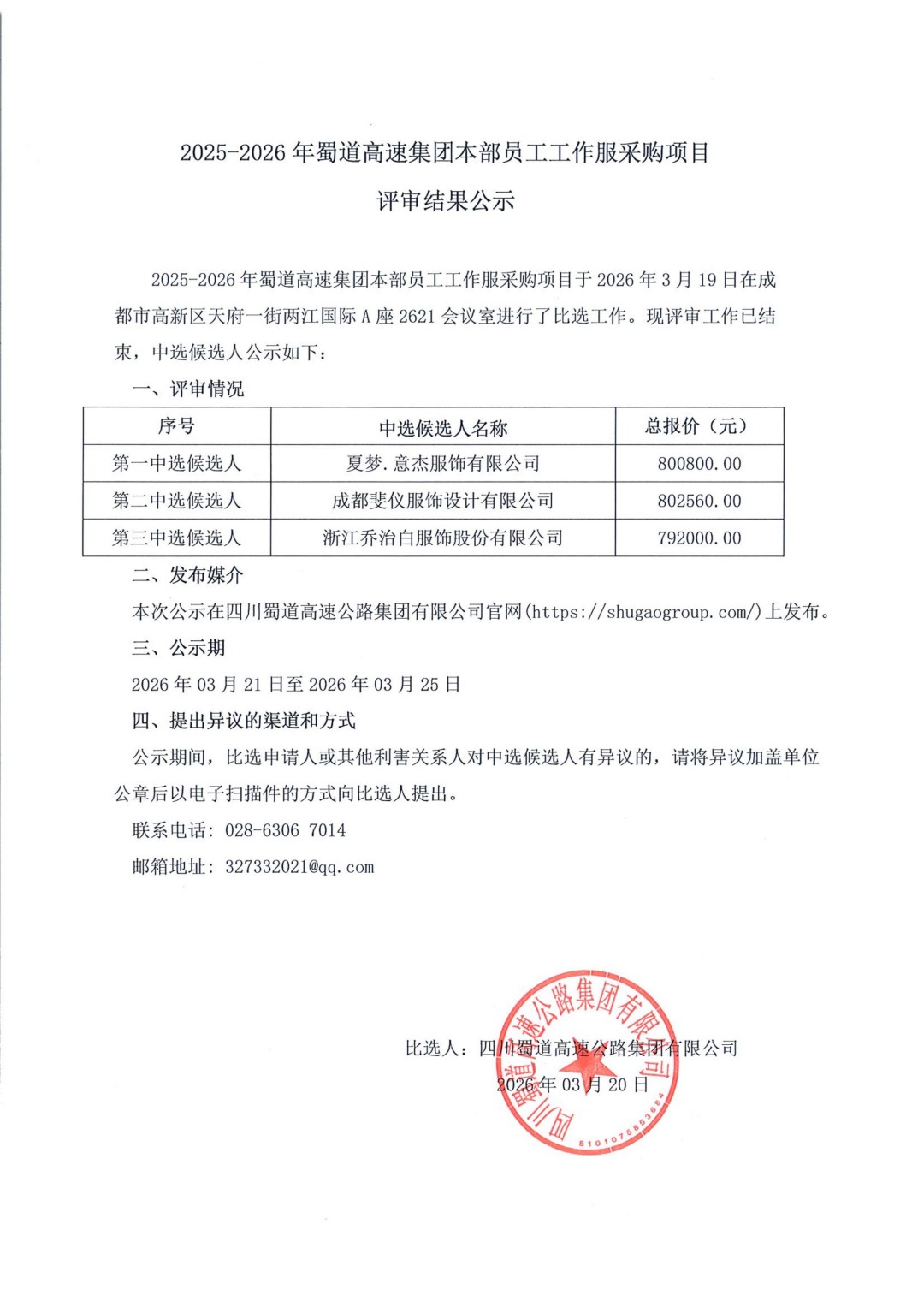 2025-2026年BETWA西汉姆联官方官网本部员工工作服采购项目评审结果公示