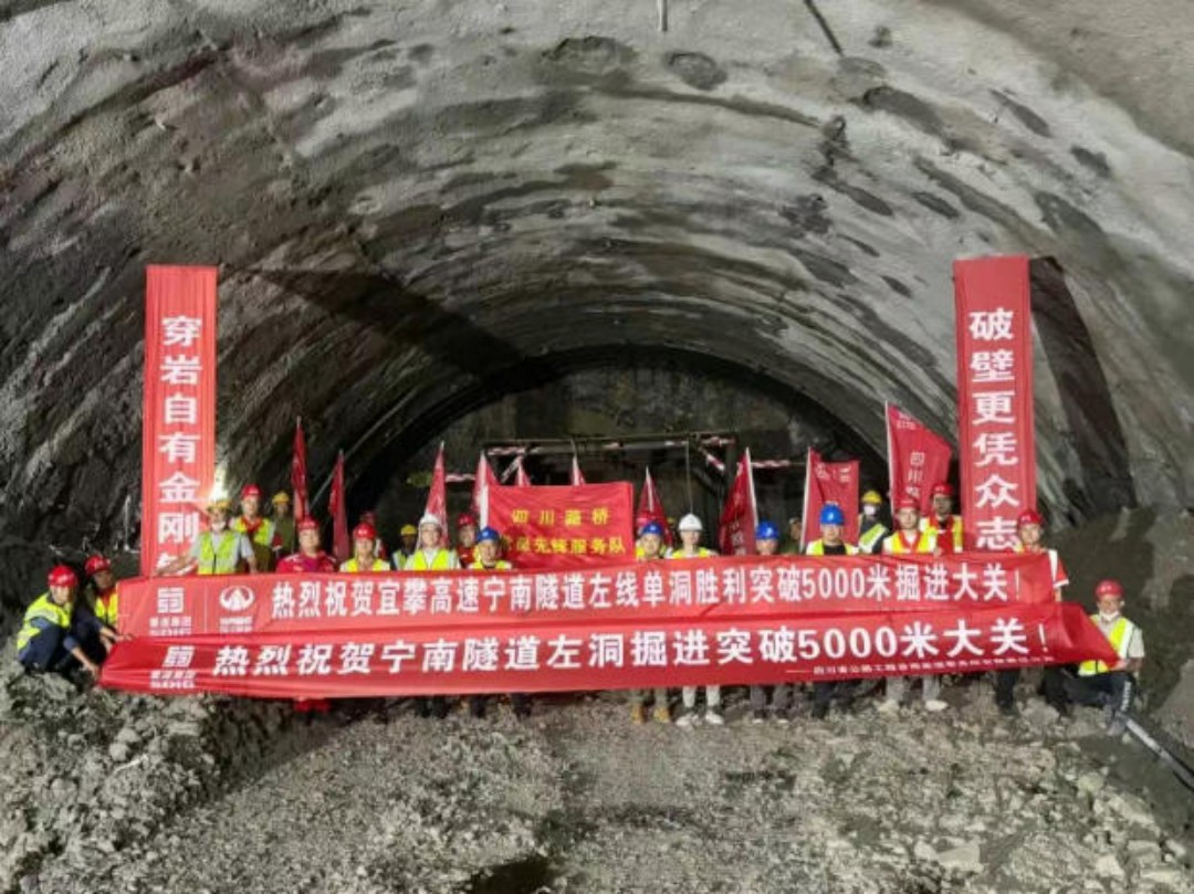8月12日,宜攀高速宁南隧道左线掘进里程成功突破5000米大关。