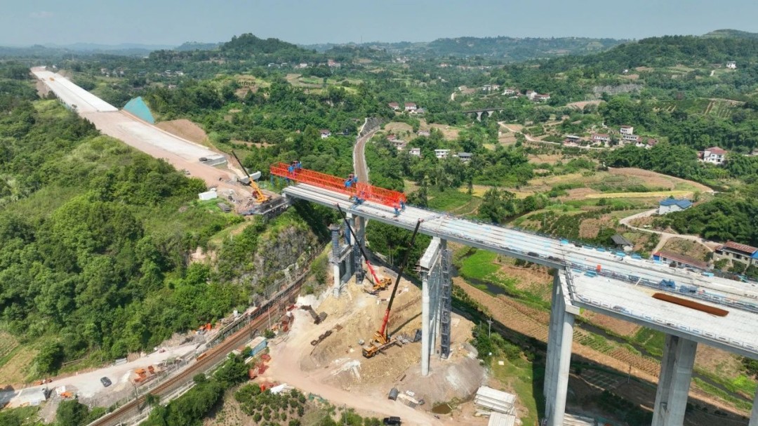 8月14日,铜资高速后沟湾大桥上跨成渝铁路右幅第11跨顺利完成箱梁架设,本次架设为铜资高速首处完成涉铁段施工的工点,为后续涉铁段施工奠定了坚实基础。
