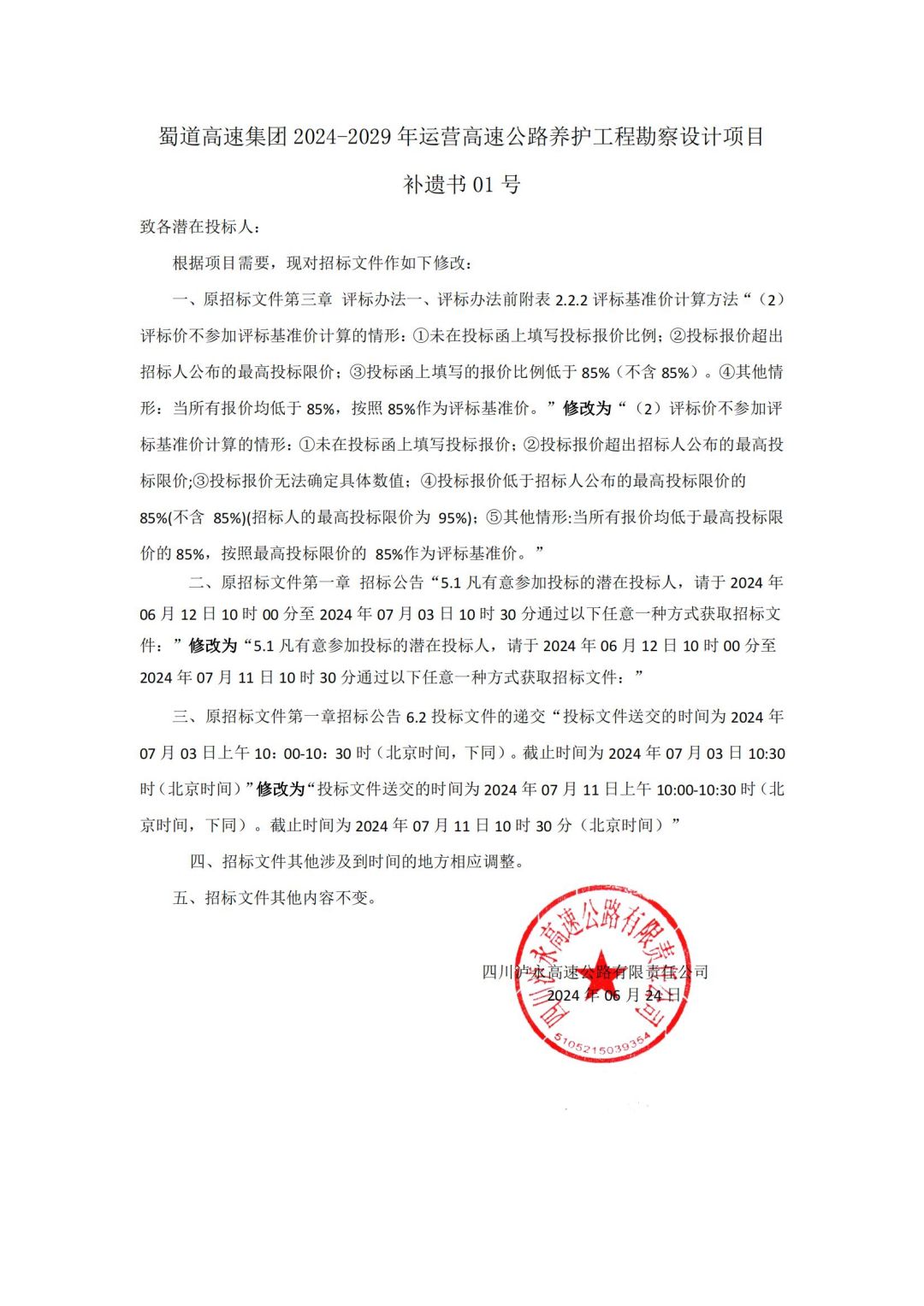 BETWA西汉姆联官方官网2024-2029年运营高速公路养护工程勘察设计项目补遗书01号