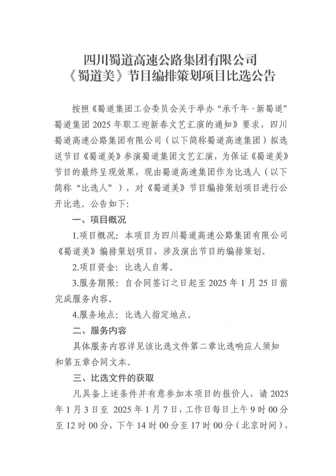 BETWA西汉姆联官方官网 《蜀道美》节目编排策划项目比选公告